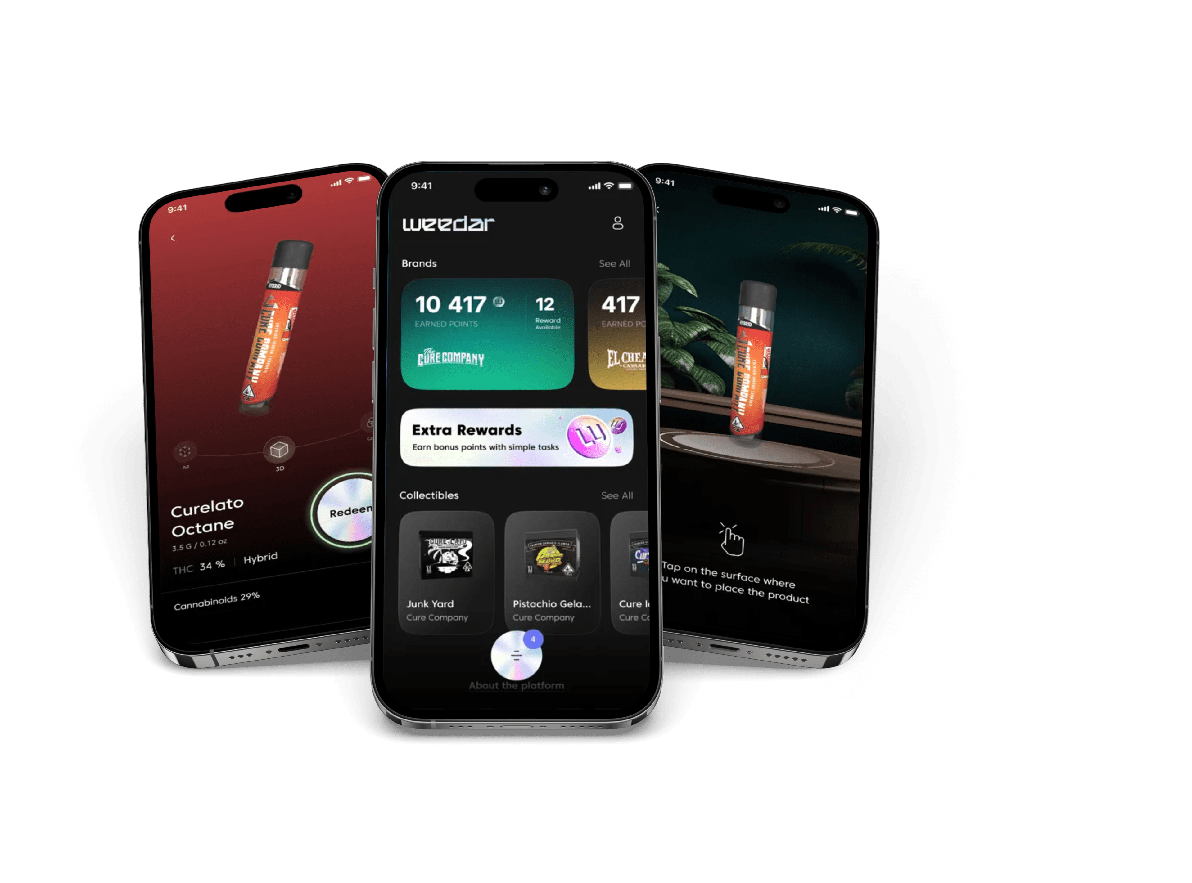Weedar's loyalty program rewards users with points for purchases and interactions, redeemable for discounts and exclusive merchandise.